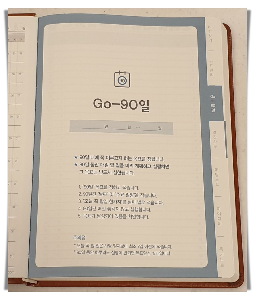 901플래너는 90일 단위로 사용하게 되어 있습니다.