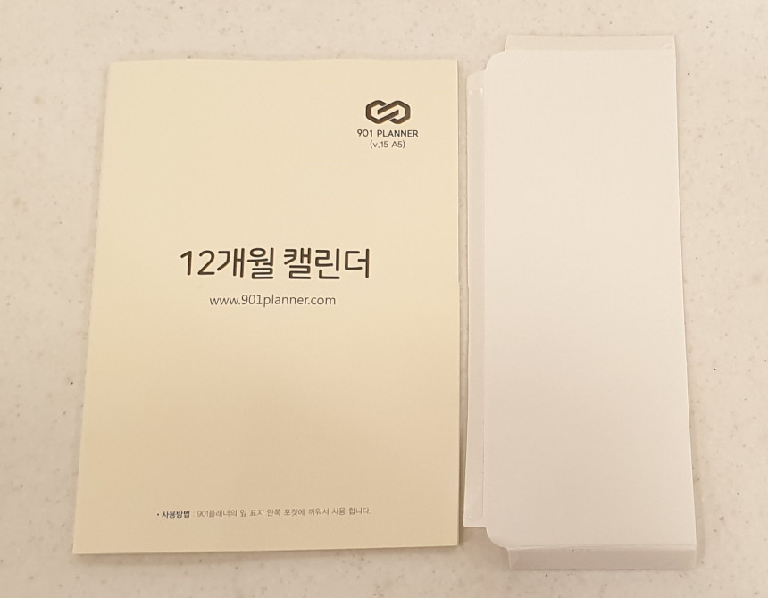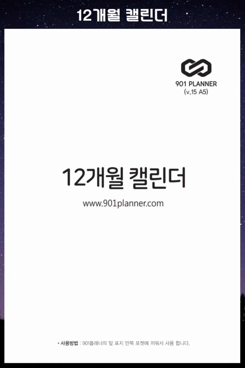 901플래너의 앞 표지 안쪽 포켓에 끼워서 사용하다가, 90일 후 새로운 플래너로 바꿀 때, 연결해서 다시 끼워서 사용할 수 있도록 되어 있습니다. 1년 계획에 관한 고민을 해결한 12개월 캘린더를 개별로 구매 시에는, 부착을 위한 포켓이 함께 제공됩니다.